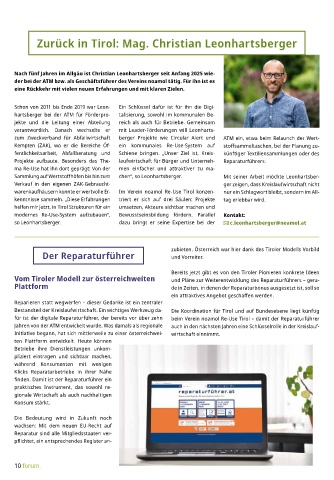 warenkaufhäusern konnte er wertvolle Er- Im Verein noamol Re-Use Tirol konzen- nur ein Schlagwort bleibt, sondern im All-